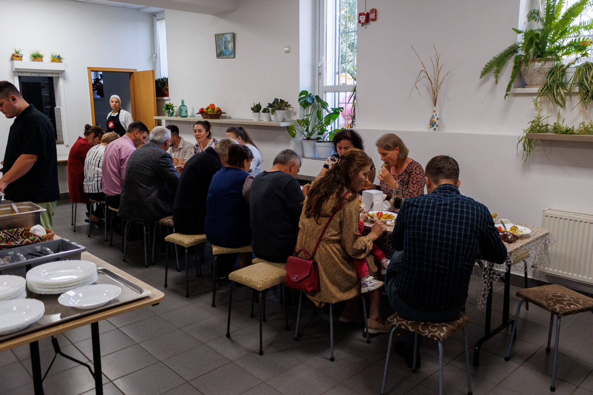 Der Boden in der Küche ist blanker Beton, es gibt nur einen Elektroofen mit zwei Platten, und kein fließendes Wasser. Das ganze Gebäude hat keine Heizung. Die Mitarbeiterinnen wollen das Gebäude renovieren, aber sie haben keine Mittel dafür. Sie suchen nach einer Möglichkeit, es für den Winter zu heizen, aber bisher sind alle Lösungen zu teuer. Trotzdem bleiben sie dran, weil sie wissen, dass diese Mahlzeiten für die älteren Menschen oft die einzige warme Mahlzeit des Tages sind. Außerdem sind sie die einzigen, die regelmäßig zu diesen Menschen kommen, und dadurch entstehen wertvolle Freundschaften.