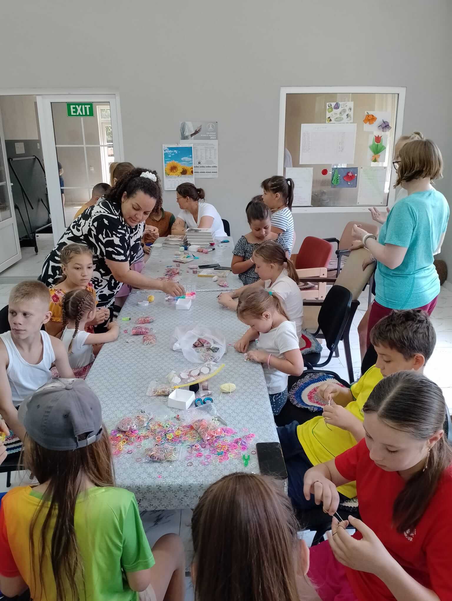 In der ersten Woche stiegen die Temperaturen auf über 40 Grad, und wir waren uns zunächst unsicher, wie wir bei dieser Hitze ein Kinderprogramm im Freien durchführen sollten. Ich, Silvia, leitete das Programm und machte mir viele Gedanken, bevor wir ins Dorf fuhren. Doch Gott hatte bereits eine Lösung vorbereitet. Im Raum, wo wir das Programm durchführten, gab es eine Klimaanlage. Zudem brachten einige der Kurzzeitler Material mit, um Armbänder zu basteln. Statt draußen zu spielen, verbrachten wir die Zeit im klimatisierten Raum mit Basteln. Da nicht so viele Kinder zum Programm kamen, hatten wir genug Zeit und Material für jedes Kind, und jedes Kind bekam viel Aufmerksamkeit.