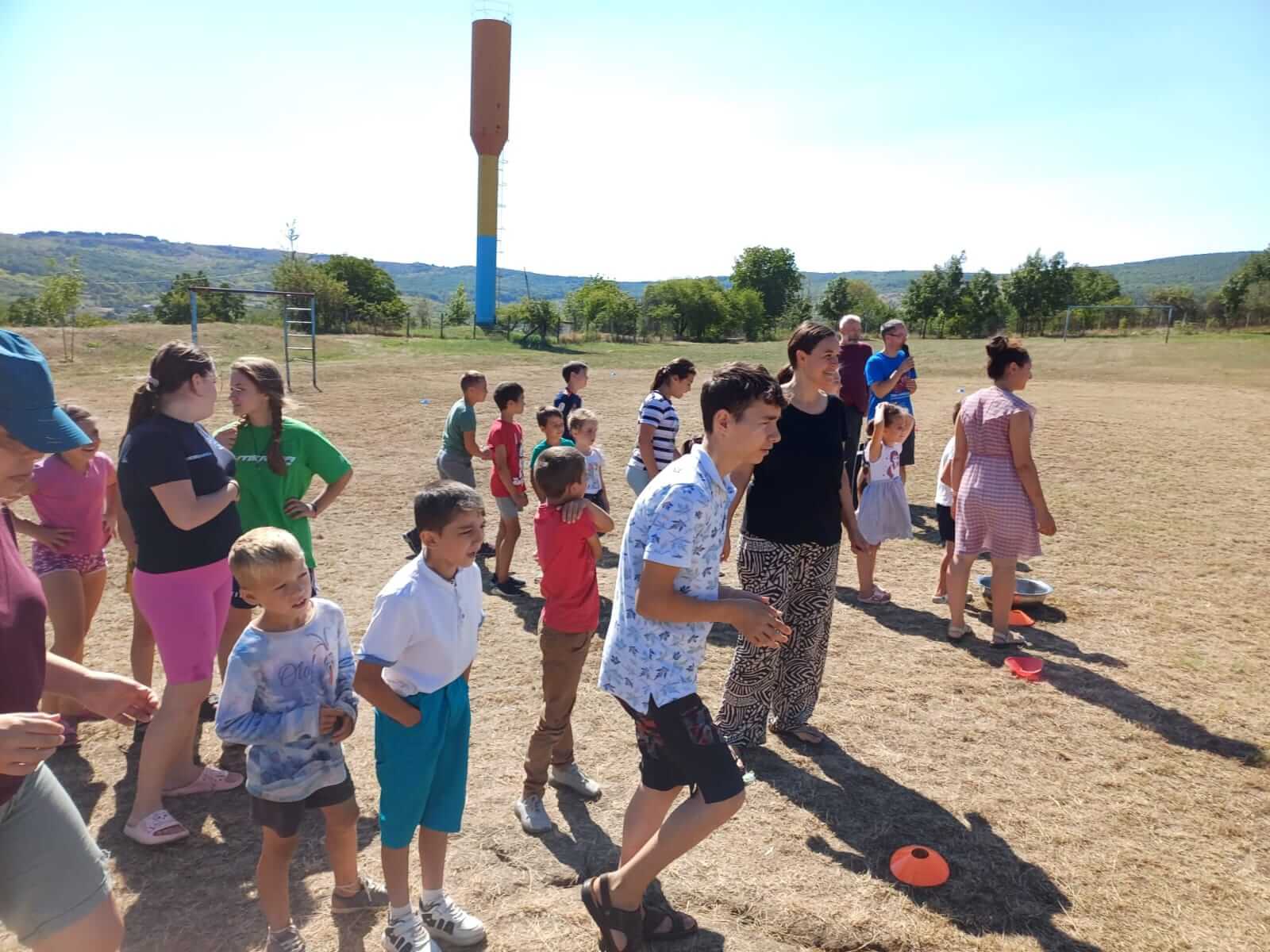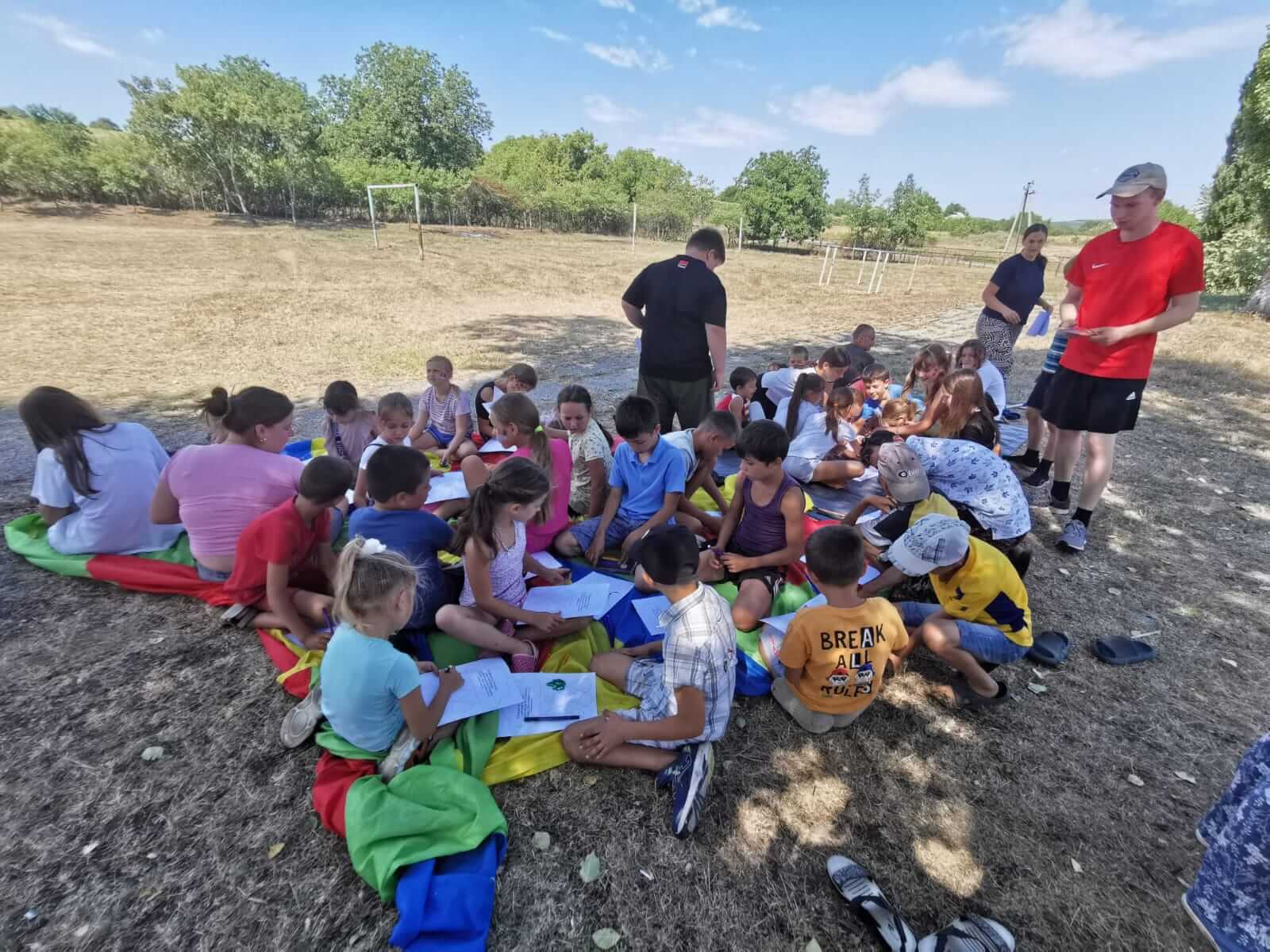 Im zweiten Dorf war es dann deutlich kühler, und wir konnten jeden Tag ein großartiges Programm zusammen mit der lokalen Kirche durchführen. Die Kirche organisierte sogar eine Hüpfburg und ein Trampolin, was den Kindern viel Freude bereitete. So konnten wir ohne Probleme ein 4-stündiges Programm anbieten. Dank genügend rumänisch sprechender Helfer teilten wir die Kinder für die Bibelstunden in Kleingruppen ein. Das war eine der besten Entscheidungen, denn so konnten die Kinder besser verstehen, diskutieren, Fragen stellen, und wir konnten viel gezielter für sie beten.