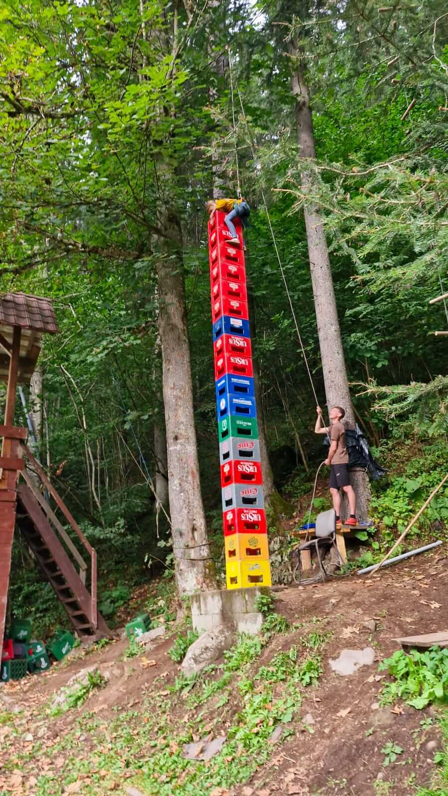 Nach den vielen Einsätzen gönnten wir uns im August ein paar Tage zum Campen an einem See. Am Bicazsee fanden wir einen Platz, wo wir Sonne, Wasser, Matsch und Frösche genießen konnten. Jeden Abend machten wir ein Feuer, und das Holz dazu mussten wir kaum selbst besorgen. Wir hatten versehentlich auf dem Grundstück eines Einheimischen gecampt, der so viel Freude an uns hatte, dass er uns immer wieder Holz brachte.