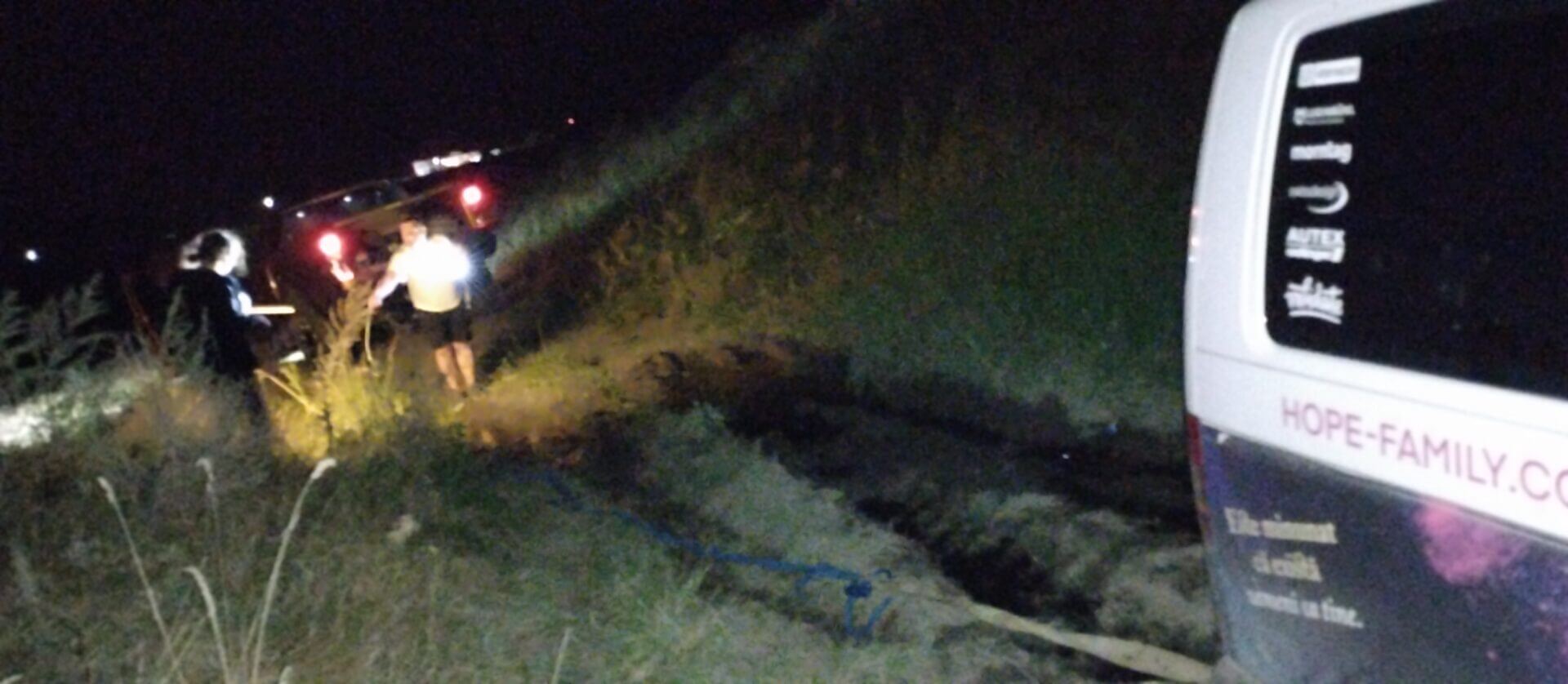 Als wir danach zurück nach Moldau fahren wollten, gab es leider Probleme. An der Grenze sagte man uns, dass unser Auto länger als 6 Monate in Moldau gewesen sei und wir deshalb nicht zurückfahren dürfen. Obwohl wir versucht haben zu verhandeln, half es nichts. So fuhren wir abends zurück nach Rumänien und wollten am Stanca-See campen. Leider war es schon dunkel, und Tim fuhr in eine riesige Matschpfütze. Da wir nicht mehr herauskamen, bauten wir das Zelt auf und bereiteten uns darauf vor, dort zu übernachten. Zum Glück konnte Tim jemanden aus dem lokalen 4x4 Club erreichen, der uns gegen Mitternach herauszog.